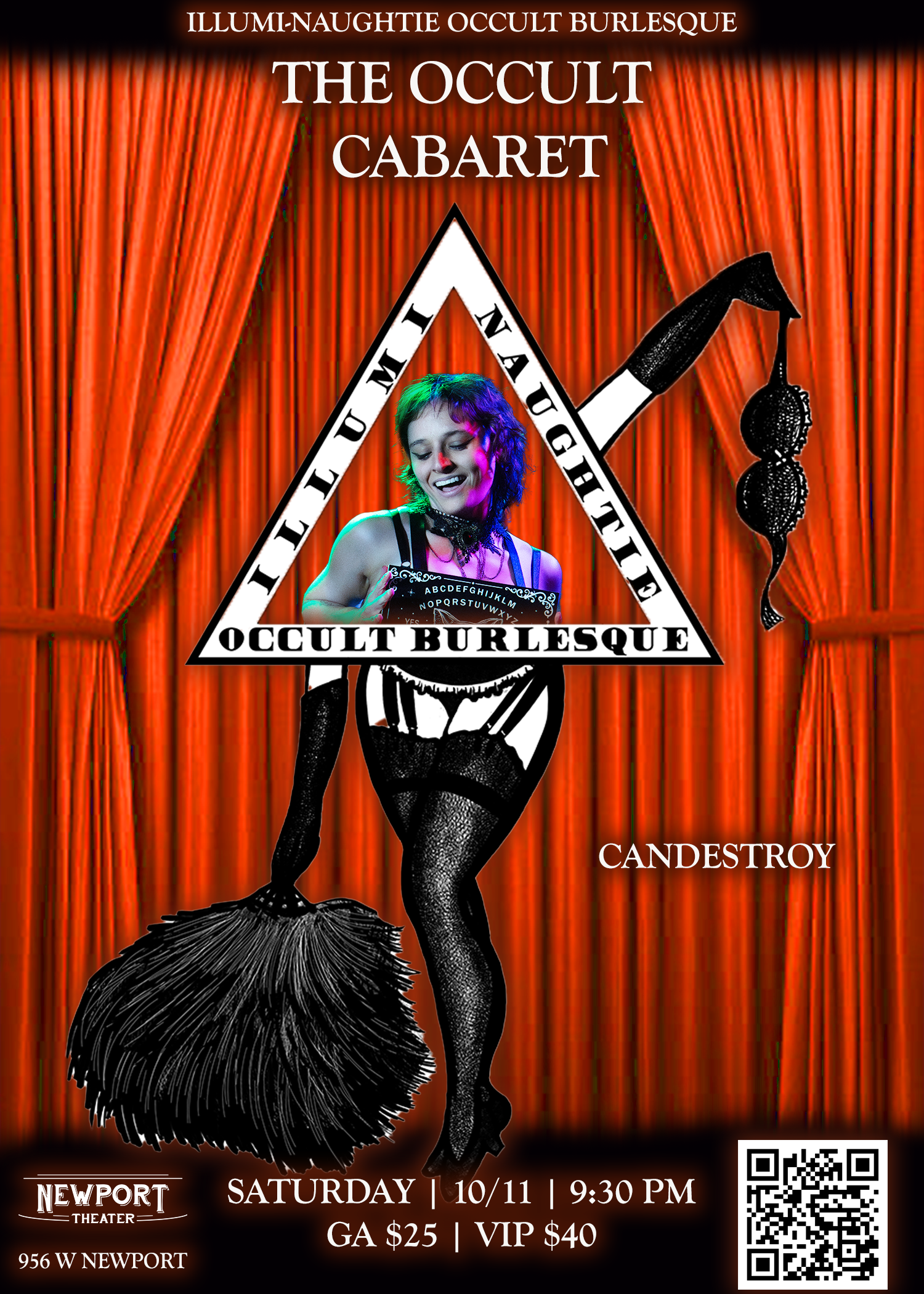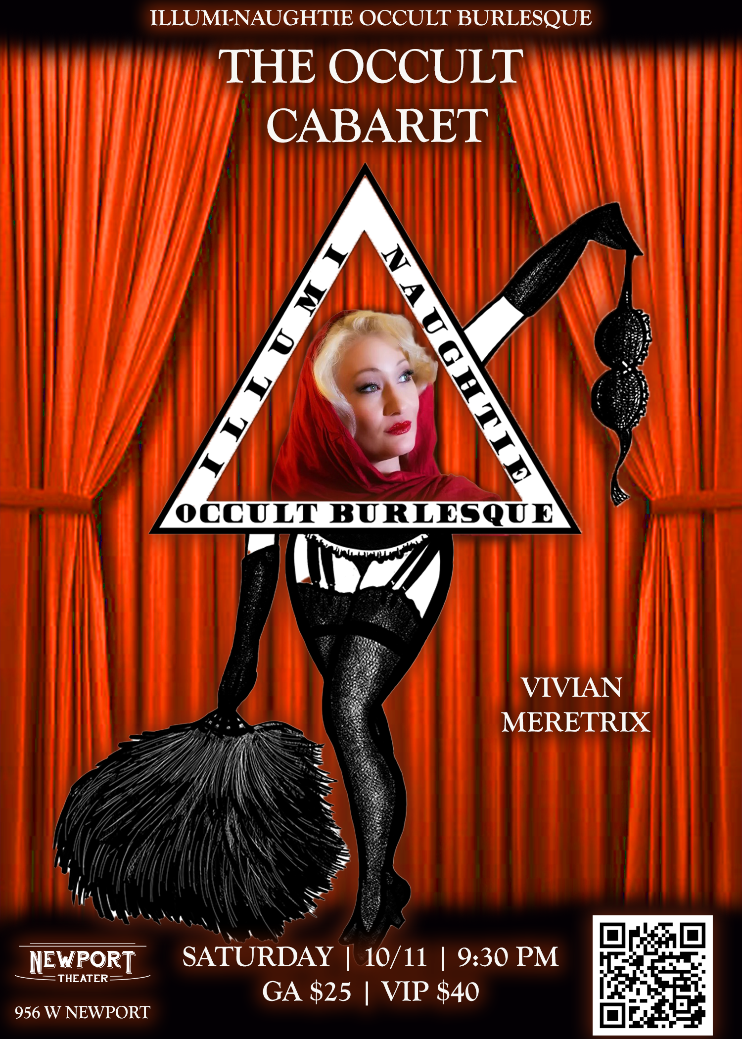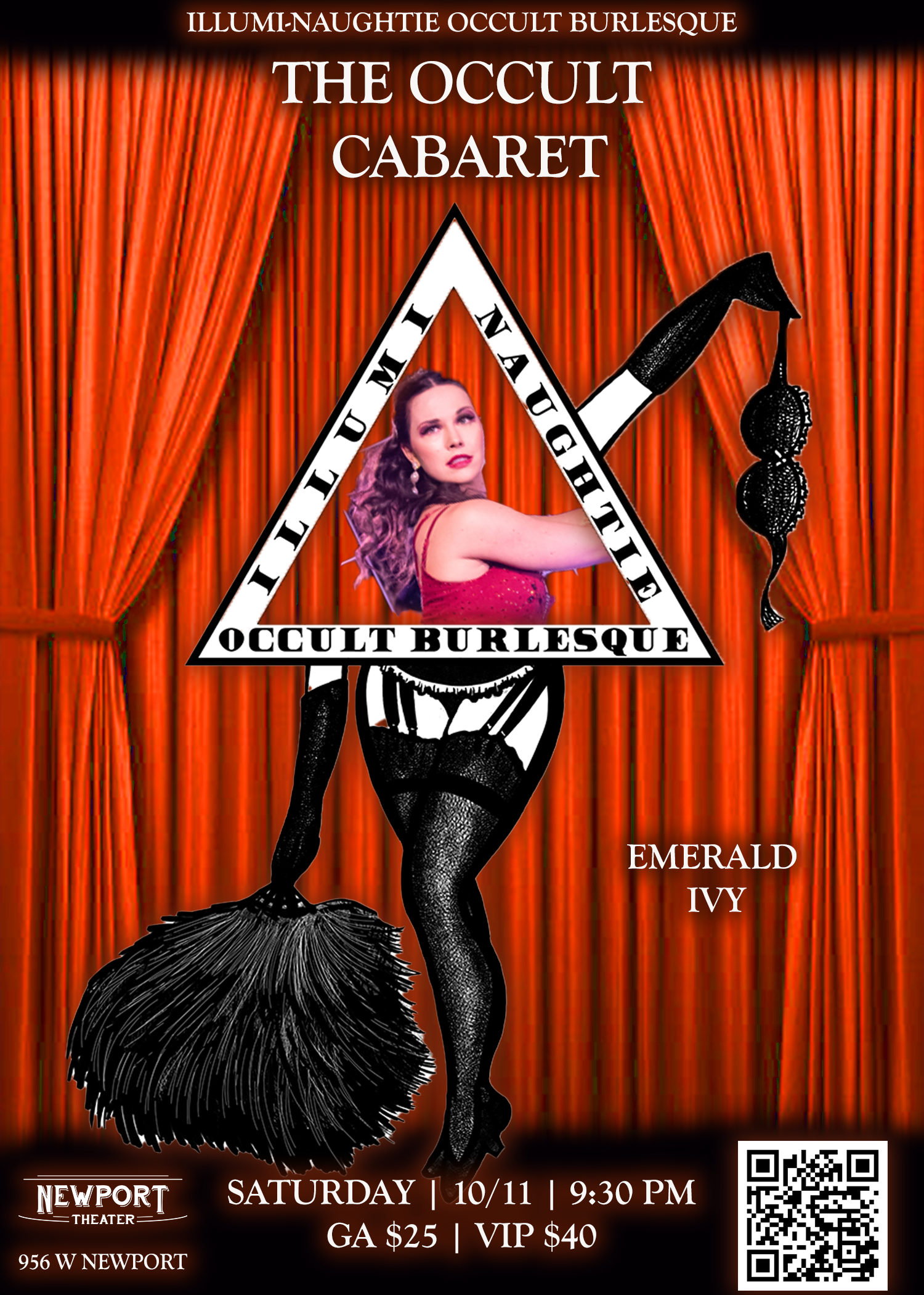 Join us for our annual October show where we explore the hidden realms of occult experience! The Occult Cabaret is a unique burlesque show with our performers both titillating you and educating you on some of the core principles of occultism, with acts focused on topics such as witchcraft, the ritual of initiation, chaos magick, the tarot, the secret language of the angels, and more! Featuring the mysterious talents of Sio Bast, Vivian Meretrix, Frann Fatale, Emerald Ivy, Alystair Calloway, CanDeStroy, and Cicada Greene! Hosted by emcee Frater Fabulosa!